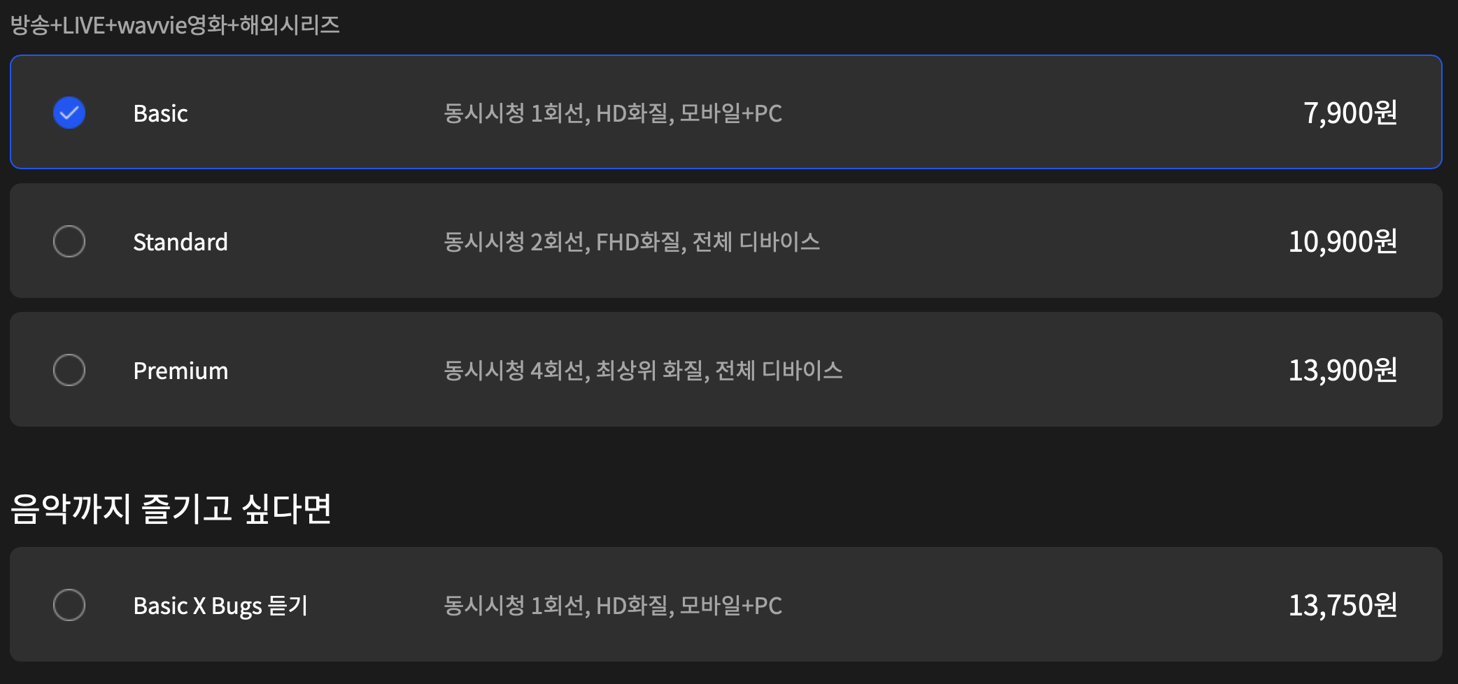 가장 높은 요금제를 이용하면 4명까지 동시 시청 가능한 부분 덕분에 넷플릭스, 왓챠, 웨이브 서비스 중 웨이브 요금만 담당하고 있습니다. 나머지는 다른 지인들이 부담하고요. 쿠팡 플레이는 쿠팡 와우 회원(월 2,900원)이라면 무료로 이용할 수 있고, 티빙은 네이버 플러스 멤버십(월 4,900원)을 가입하면 무료로 이용 가능합니다. 쿠팡 와우 회원과 네이버 플러스 멤버십은 원래 제공하는 서비스에서 경제적 이득을 보고 있기 때문에 덤으로 OTT를 누리고 있다는 기분이 들어요! 결국 유튜브 프리미엄과 웨이브 요금만 내고 있는 셈입니다.